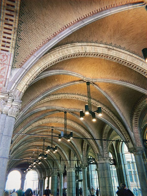 Again with the edges. I couldn’t tell you what else was in these rooms. I was so awed by the use of line, edge, light—the way old and new merged. Amsterdam felt overrun by the new along tourist streets, but creep into buildings and you’d find longstanding remains of what must not be lost. Even that cage on the ceiling of the Rijksmuseum atrium felt like a protest. The old cries out not to be forgotten while the new demands you be uncomfortable every once in a while. I could never say the same about technology, which pursues only comfort and expediency, but art? God, protect us.